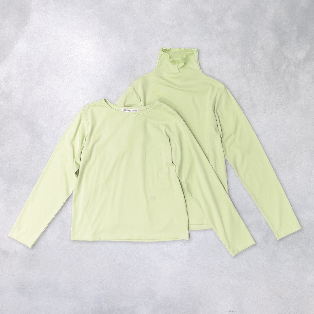 重ね着にも便利な、ハイネックとクルーネックの2タイプカットソー。