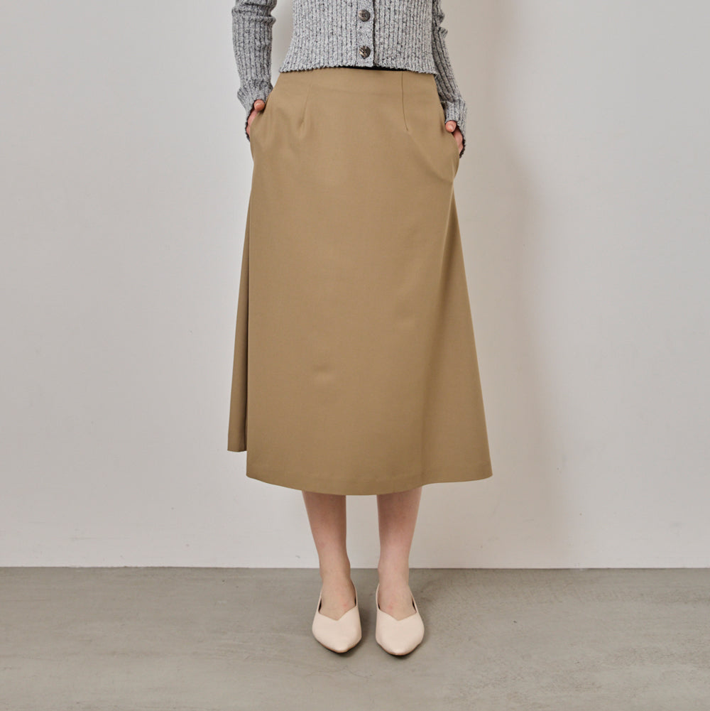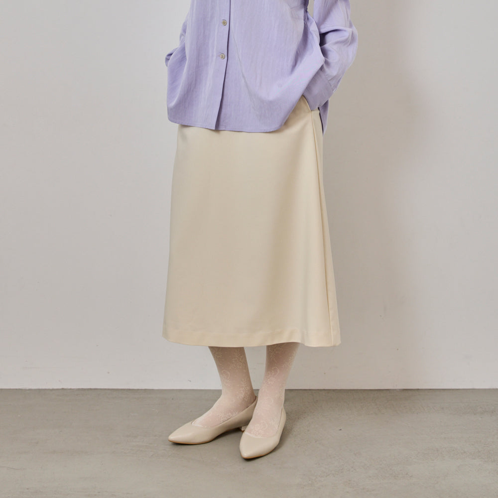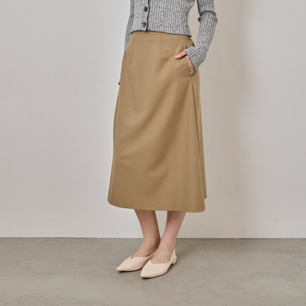 スカートは動くたびに美しいシルエットが生まれるIライン。タイトなトップスにも、オーバーサイズのトップスにも合わせやすく、体のラインを拾いにくい設計です。ポケット付きでデイリーに使いやすく、後ろファスナー仕様で着脱もスムーズ。裏地付きのため、透けを気にせず安心して着用できます。